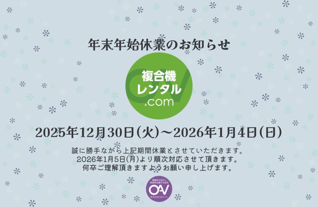 複合機レンタル.comでは、年末年始休暇の期間を以下の通りとさせていただきます。